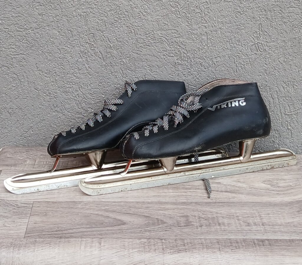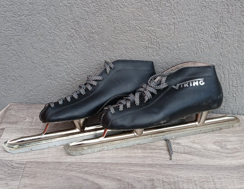 Korčule značky Viking, ktoré sa špecializujú na rýchlokorčuľovanie a jazdu na dlhé trate. Sú vyrobené z lícovej hovädzej kože s hrúbkou približne 2 až 2,2 mm, čo zabezpečuje odolnosť a stabilitu. Ide o klasický model s pevnou čepeľou , ktorý je ideálny pre rekreačných korčuliarov aj začiatočníkov v rýchlokorčuľovaní. Často sa predávajú ako zberateľské kúsky alebo retro športové vybavenie. Používané .Číslo – 45.