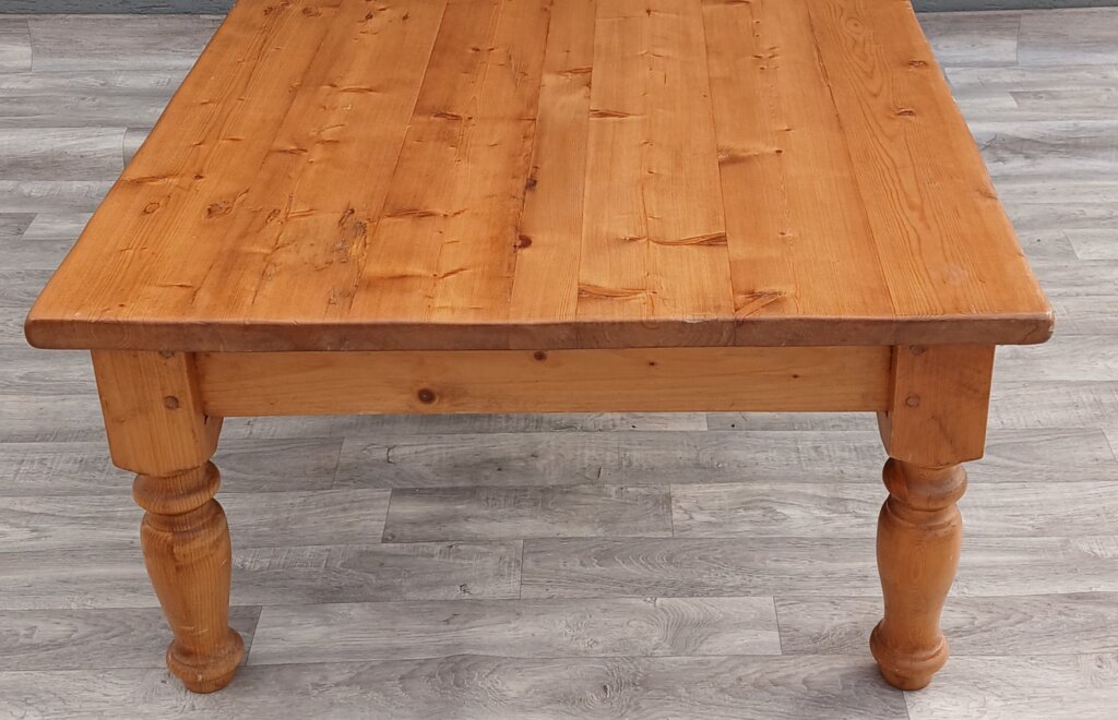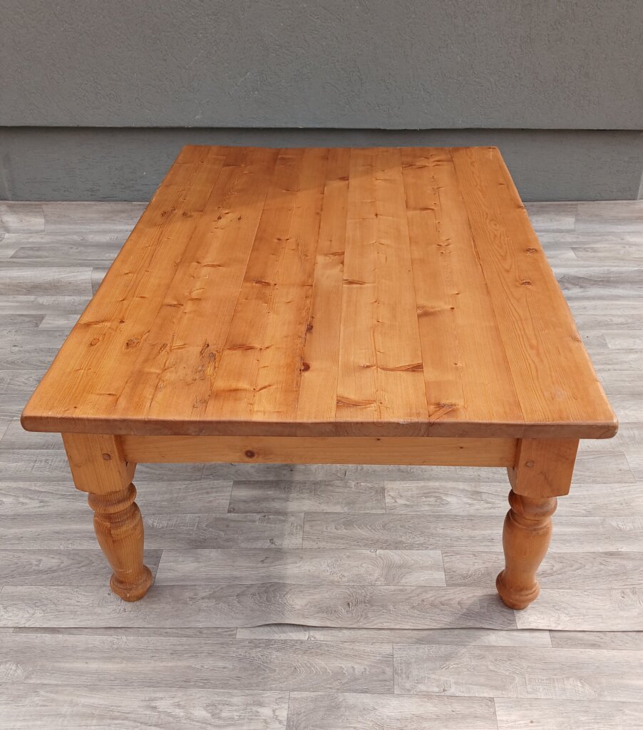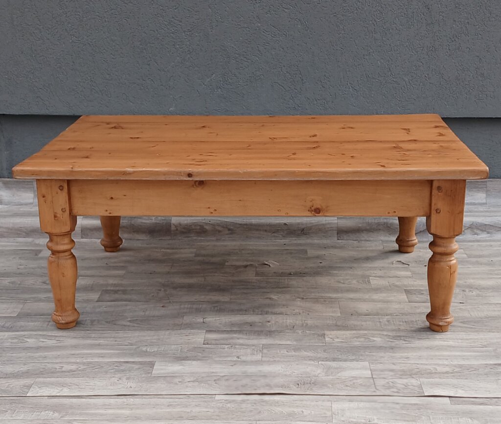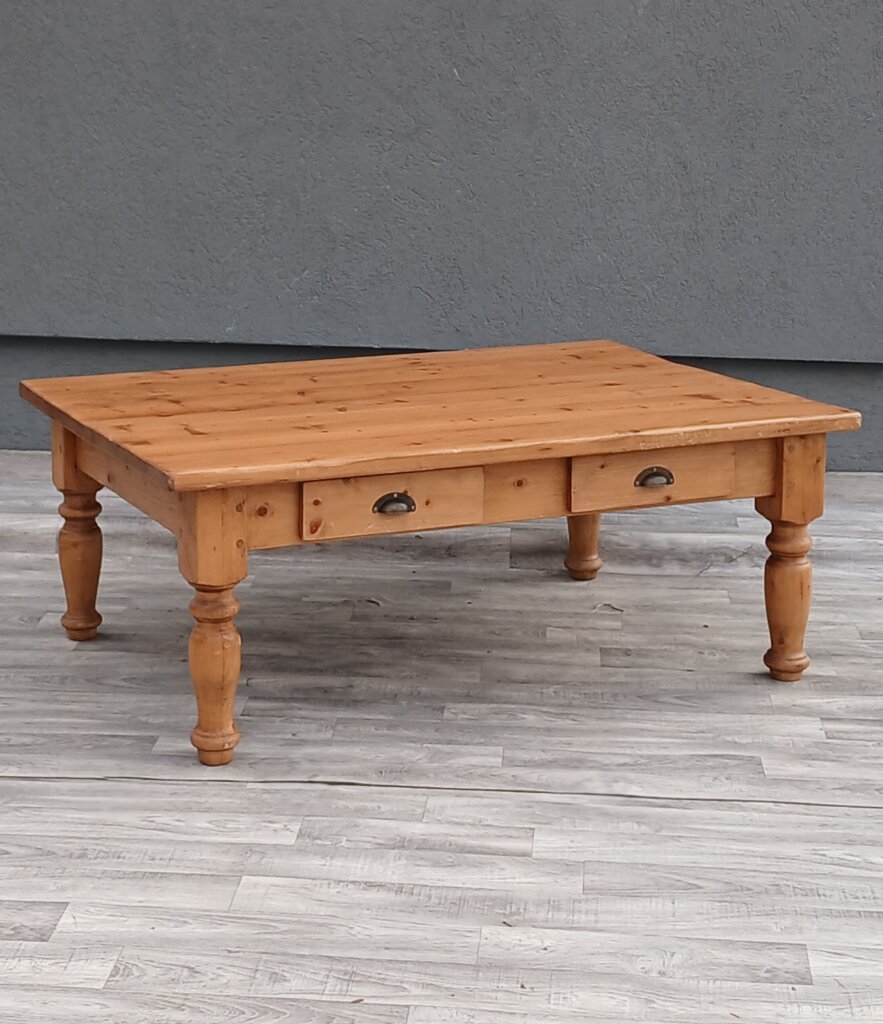 Tento konferenčný stolík zo smrekového dreva vďaka svojej robustnej konštrukcii a tradičnému spracovaniu sa bude hodiť najmä do obývačiek ladených vo vidieckom, chalupárskom , alebo koloniálnom štýle. Masívne vyrezávané nohy dodávajú stolíku stabilitu . Disponuje praktickými zásuvkami s ozdobnými mušľovými kovovými úchytkami , ideálnymi na odkladanie ovládačov, časopisov alebo drobností. Používaný . Výška – 50 cm , dĺžka – 130 cm , šírka – 90 cm .