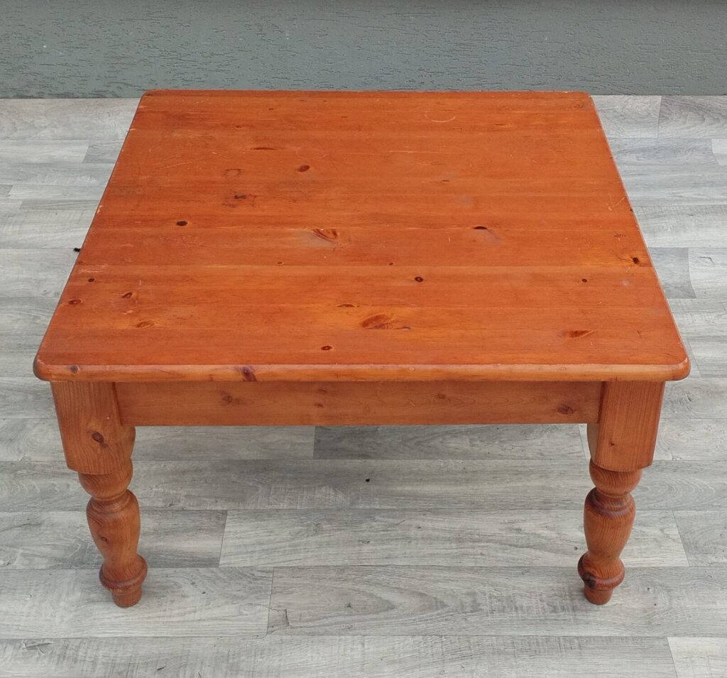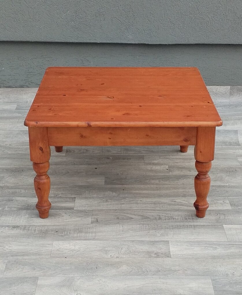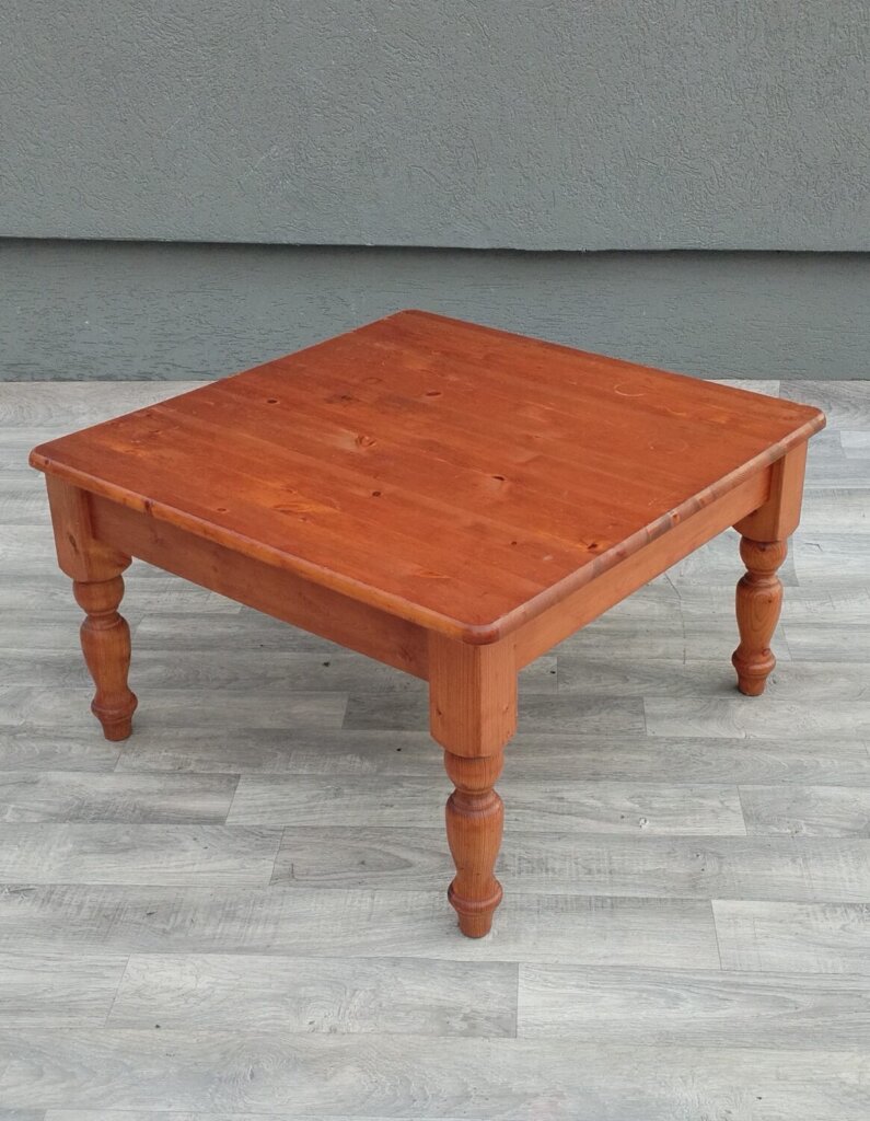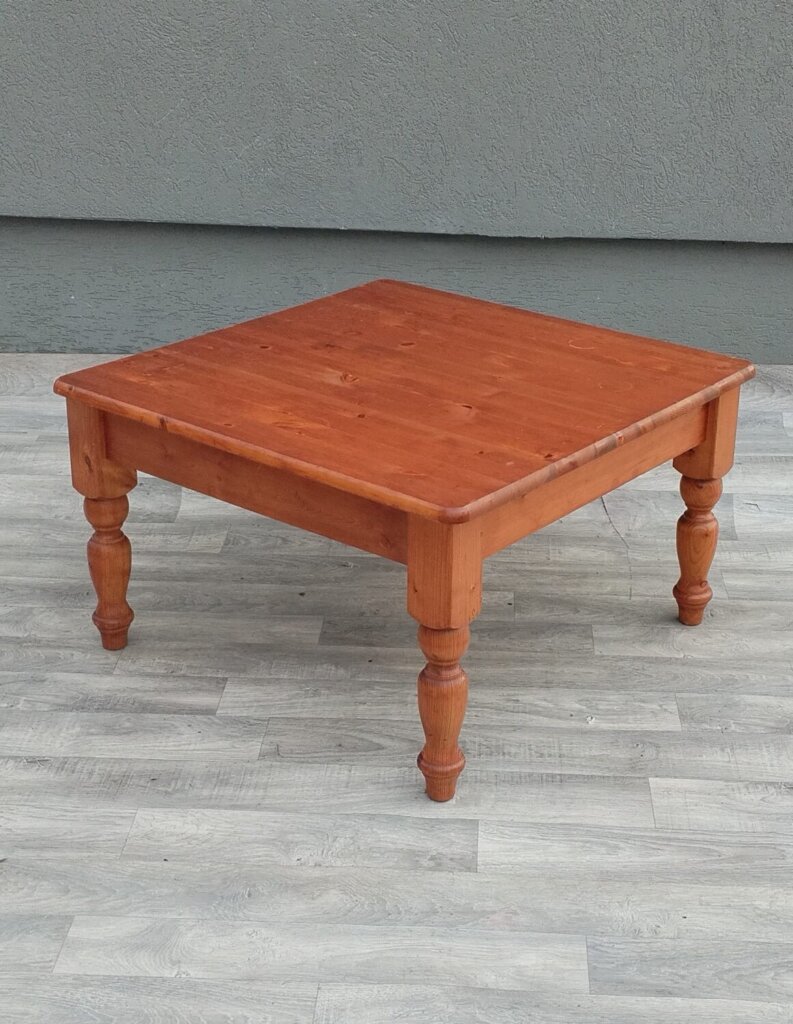 Tento smrekový štvorcový konferenčný stolík s výraznými sústruženými nohami , bude vďaka svojmu dizajnu ideálny do interiérov zariadených v rustikálnom, vidieckom alebo koloniálnom štýle. Používaný . Výška – 43 cm , dĺžka – 74 cm , šírka – 74 cm .
