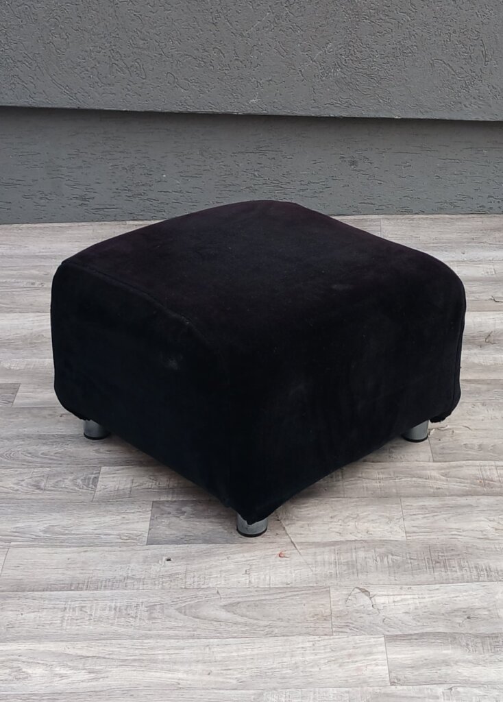 Tento štýlový štvorcový taburet v elegantnej čiernej farbe bude dokonalým doplnkom do každého moderného interiéru. Vďaka svojmu minimalistickému dizajnu a čistým líniám sa bude hodiť nielen do obývačky, ale aj do spálne či predsiene. Poslúži ako pohodlná podnožka po dlhom dni, prídavné miesto na sedenie pre hostí alebo ako štýlový odkladací priestor. Kvalitné velúrové látkové čalúnenie je príjemné na dotyk . Nízke valcovité nožičky v striebornom prevedení zabezpečujú stabilitu a uľahčujú manipuláciu pri presúvaní. Vďaka štvorcovému tvaru nezaberá veľa miesta a ľahko ho zasuniete pod stôl alebo do rohu miestnosti. Používaná . Výška – 37 cm , šírka – 55 cm , hĺbka – 55 cm .
